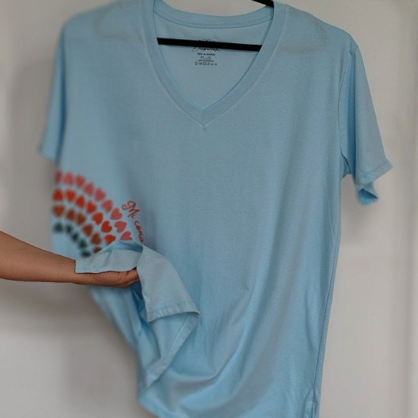 Remera Arcoiris Plus Escote V Celeste