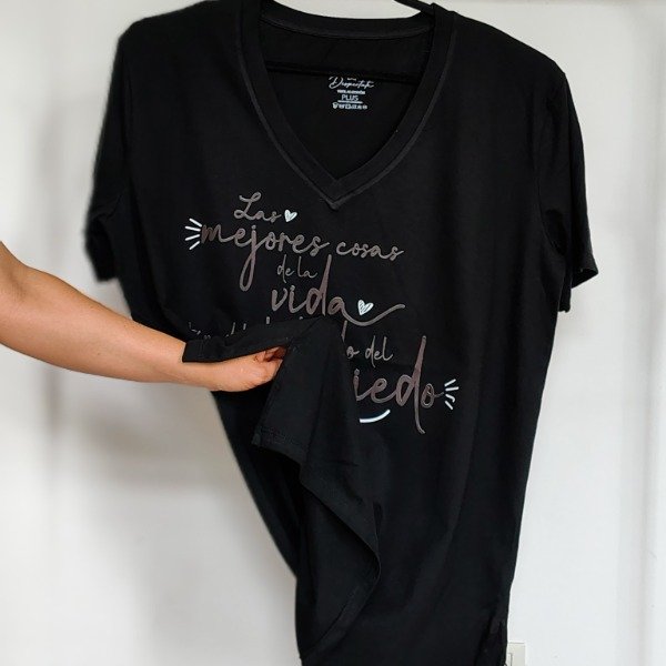 Tiene 67cm de ancho o se torax, es escote V no muy profundo para que estes comoda.